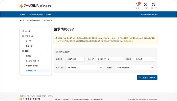 前日までにお届け完了しているご注文について、請求情報がダウンロードできるので、これまで手書きや、別のメモから転記していた社内の経理申請などをスムーズに行えます。