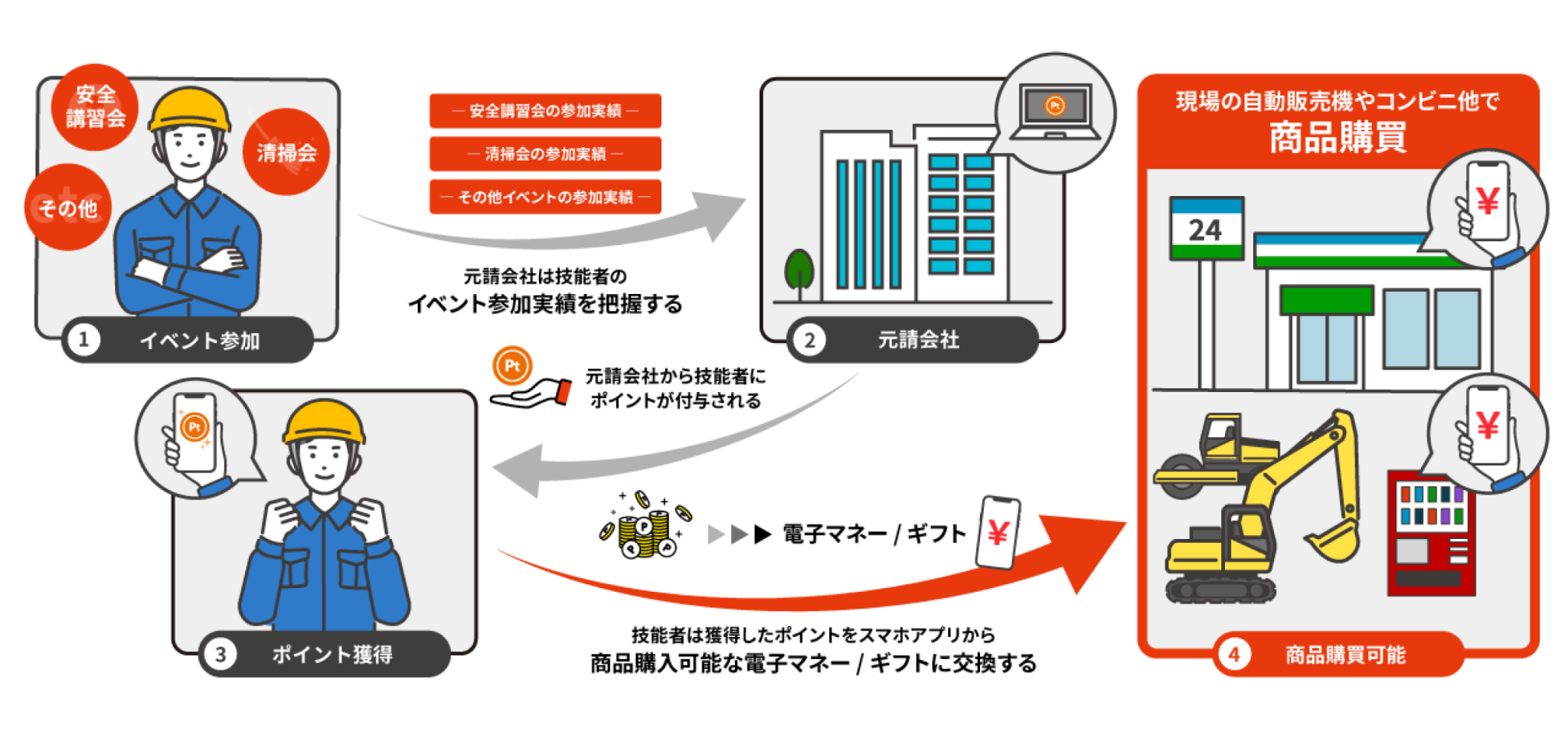 当社は今後も、サービスの利便性向上やポイント交換先の拡充等の機能改善を通じ、技能者のモチベーション向上や魅力的な現場の創出に寄与するサービスづくりに努めてまいります。