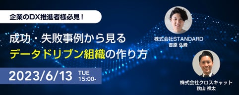 【6月13日(火)15:00~16:00】株式会社STANDARDと共同Webセミナー開催「企業のDX推進者様必見!成功・失敗事例から見るデータドリブン組織の作り方」