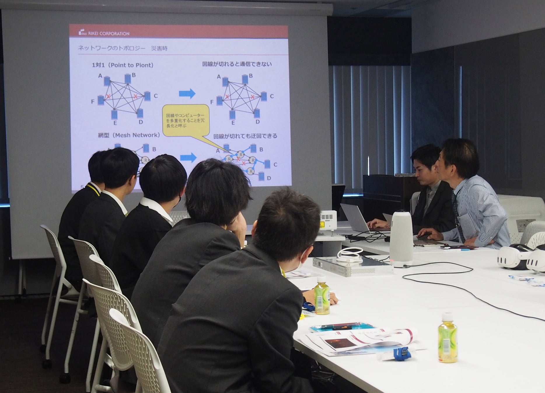そこで、Jアラートで培われた理経の災害に強い長距離無線LANを利用した防災情報システムや、その通信技術について講義を行いました。これらは実際に自治体で利用されているものです。