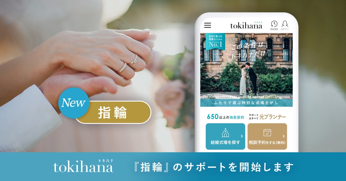 LINEでできる式場探し『トキハナ(https://tokihana.net/)』を運営する株式会社トキハナ(本社:東京都港区、代表取締役社長:安藤 正樹、以下 「トキハナ」)は、結婚式の準備をより豊かで充実したものにするため、『指輪探し』のサポートを開始します。トキハナで式場を決定した「トキハナメイト」の皆様に、自分たちらしい結婚式をワンストップで準備する体験を提供します。