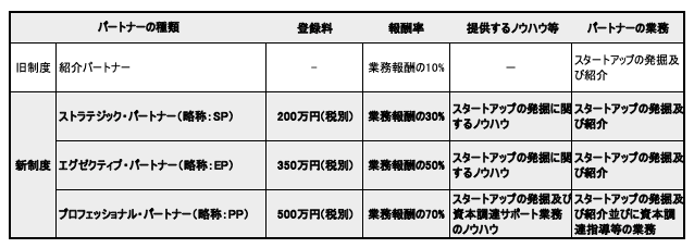 新パートナーとしては、会計事務所、司法書士事務所等の資本調達に関わる士業のほか、コンサルティングファーム、保険代理店、人材紹介業及び派遣業、不動産仲介業等、スタートアップの顧客を有する企業は業種を問わず対象となります。これらの企業にとってパートナーとなるメリットとしては、顧客の資金調達ニーズに応えることで顧客満足度の向上が図れるとともに、パートナー報酬によって付加的な収益を得ることができます。また当社の有するスタートアップ開拓ノウハウの活用を通じて新規スタートアップ顧客の獲得にプラスとなります。