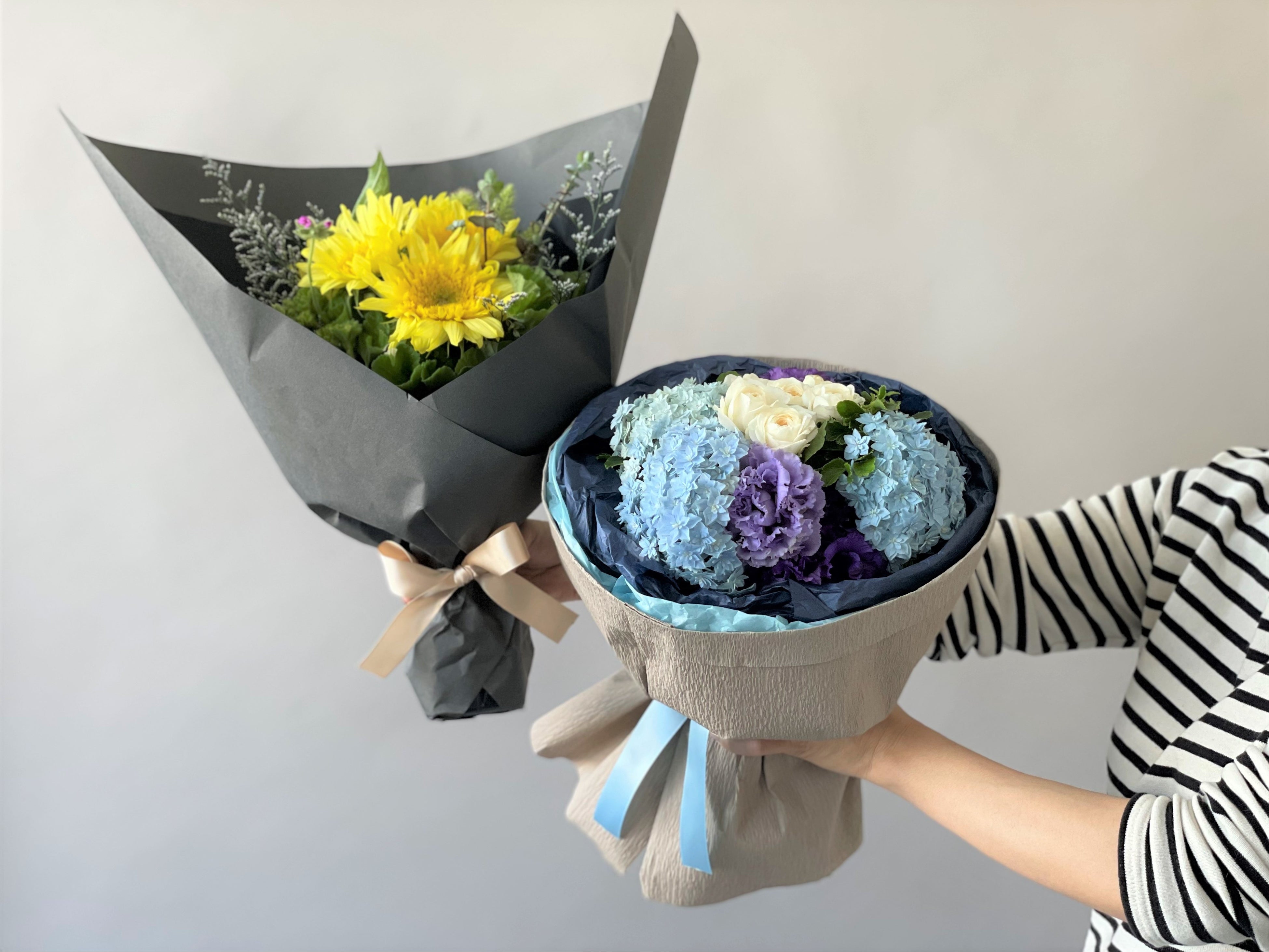 太陽のように明るいヒマワリは老若男女問わず大人気の花。6月19日(日)の父の日のプレゼントにもおすすめです。また6月といえば梅雨の季節。雨が似合うアジサイもこの季節のギフトやご自宅を飾る花としてぴったりです。黄色や青のカラフルな色合いも、梅雨で沈んだ気持ちを明るくしてくれそうですね。