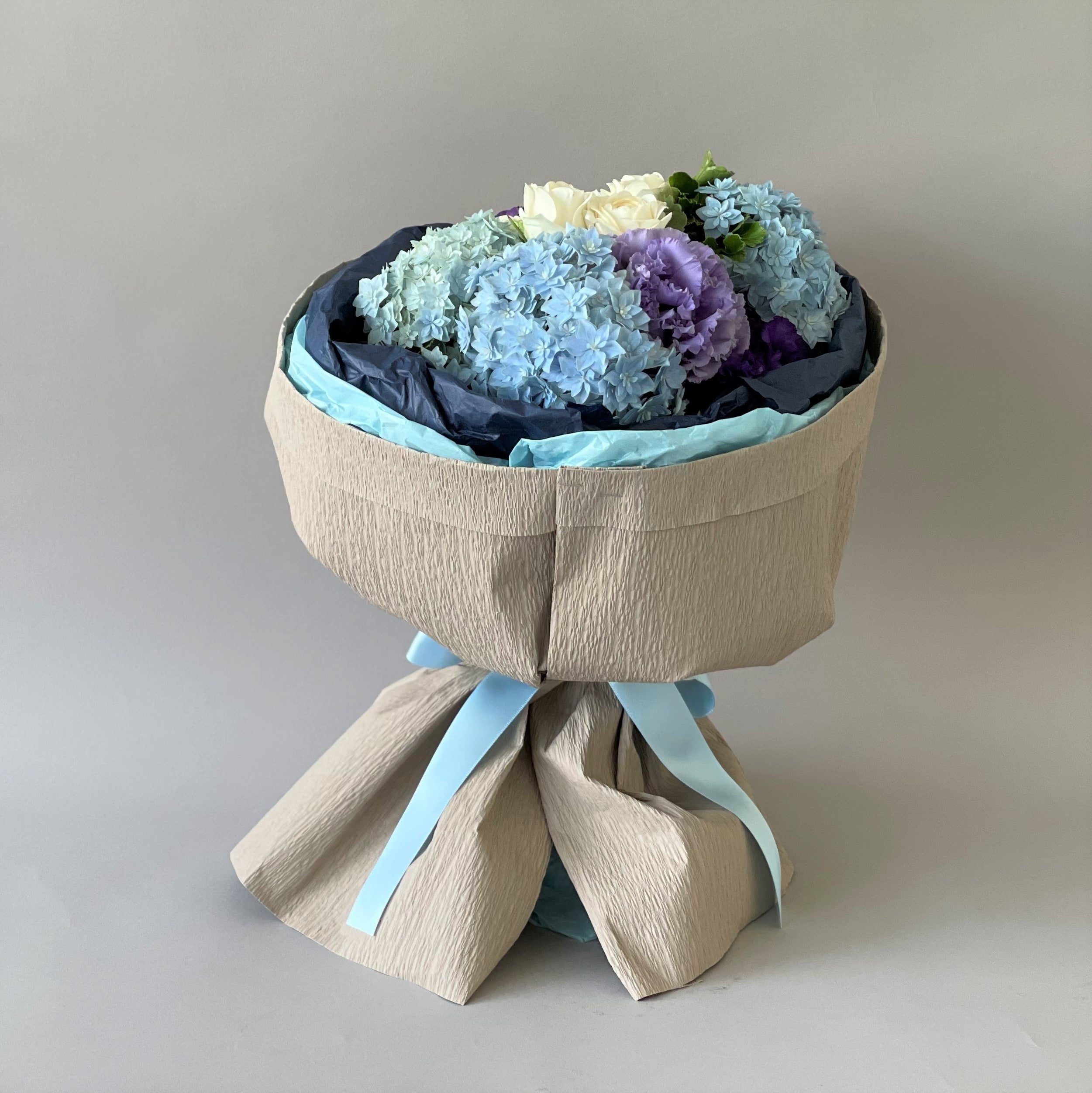 アジサイとバラをぎゅっと束ねたシンプルなブーケは父の日のギフトにもぴったりです。