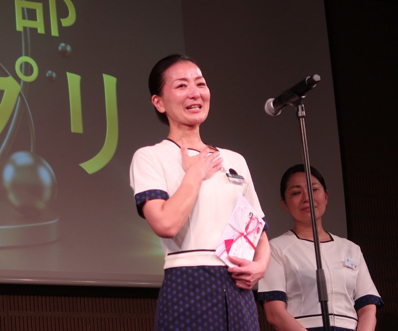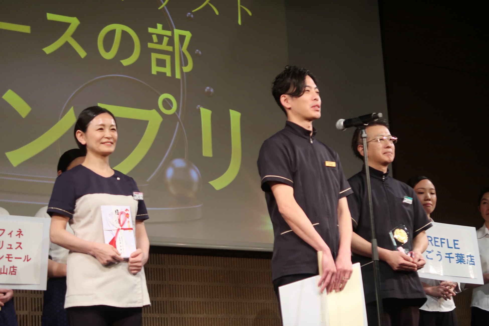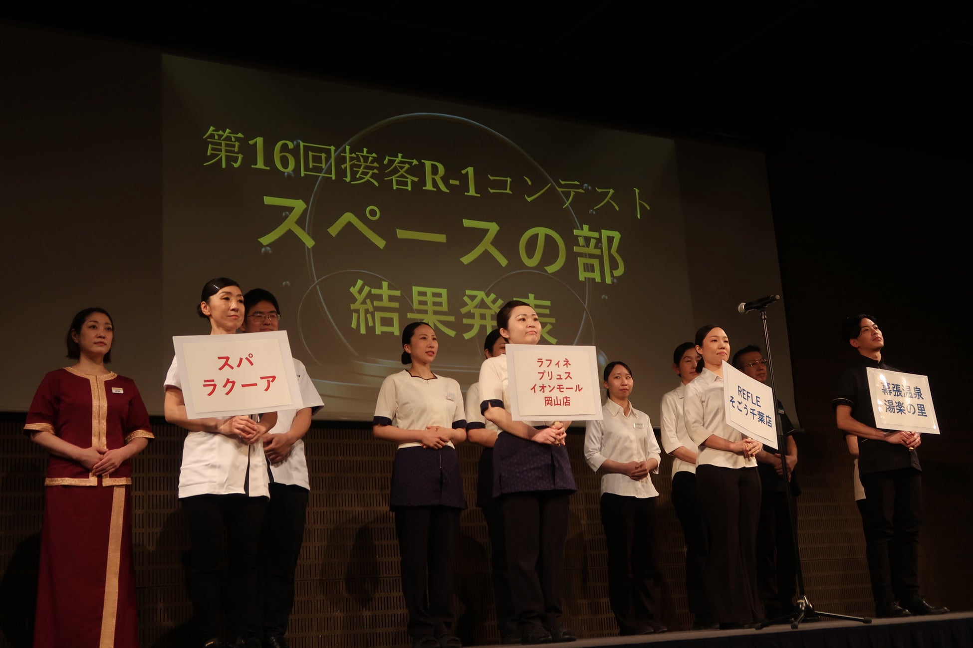 グランプリに輝いた幕張温泉 湯楽の里は「幕張は、全員がすごい!ということを証明できていました。基本をしっかりと、お客様のためにひとつひとつ丁寧に対応していることが幕張の誇りです。リバース東京が2年連続でR-1コンテスト スペースの部グランプリを受賞できたことは、大変栄誉あることだと思います」と、お客様への感謝を胸に、仲間への想いを語りました。