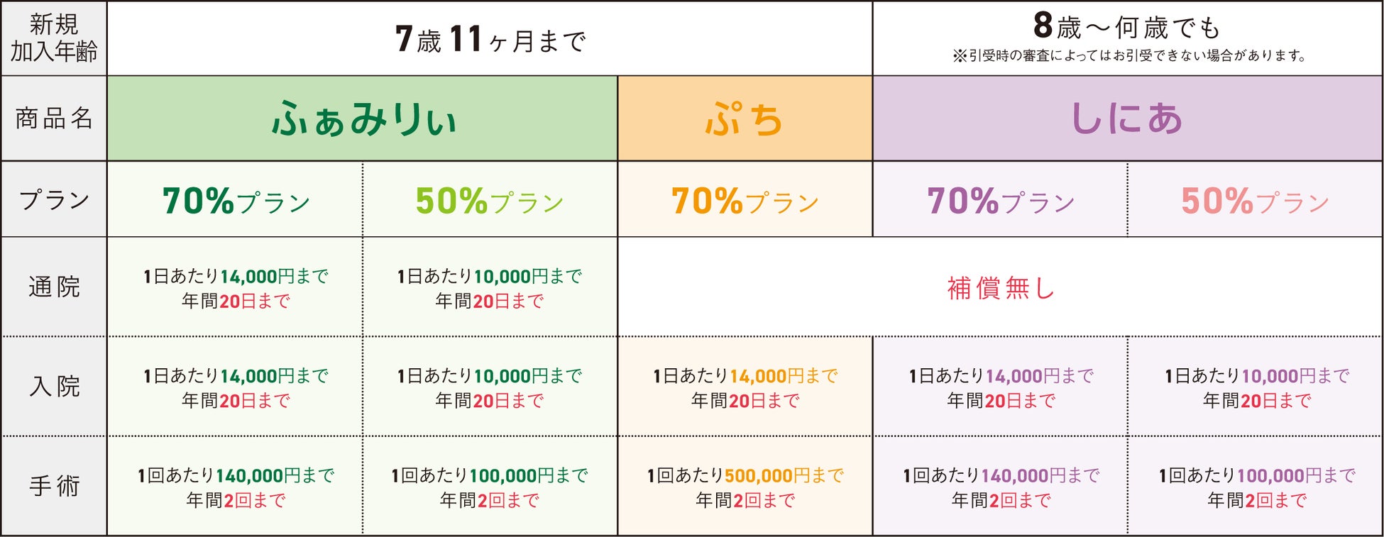 ペットのケガや病気に対して、ご契約商品に応じた診療費(通院・入院・手術)の一定割合(70%・50%)をお支払いします。