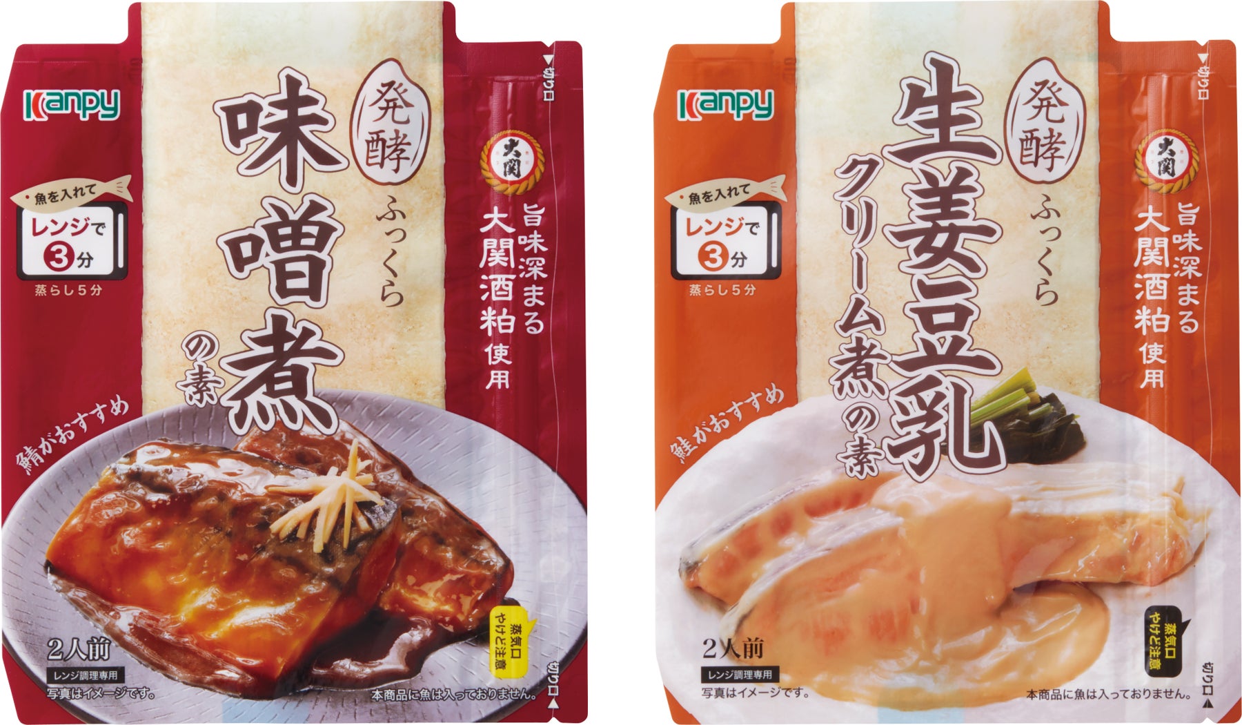 「大関株式会社の酒粕を使用」発酵の力でふっくら仕上がる魚用のレンジ対応商品「カンピー 味噌煮の素・生姜豆乳クリーム煮の素」を新発売