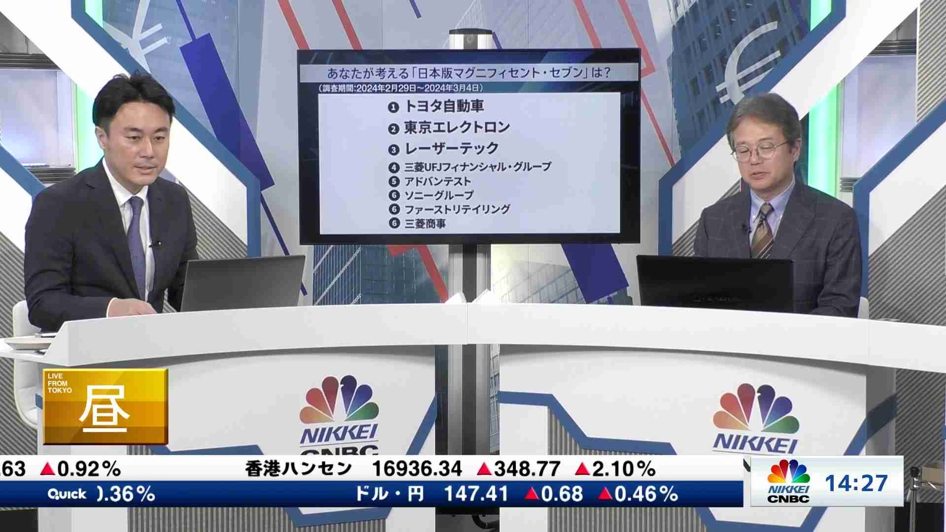 【⽇経CNBC・投資家アンケート】株式市場をけん引する日本版「マグニフィセント・セブン」は?トヨタ自動車、東京エレクトロン、レーザーテックが上位に