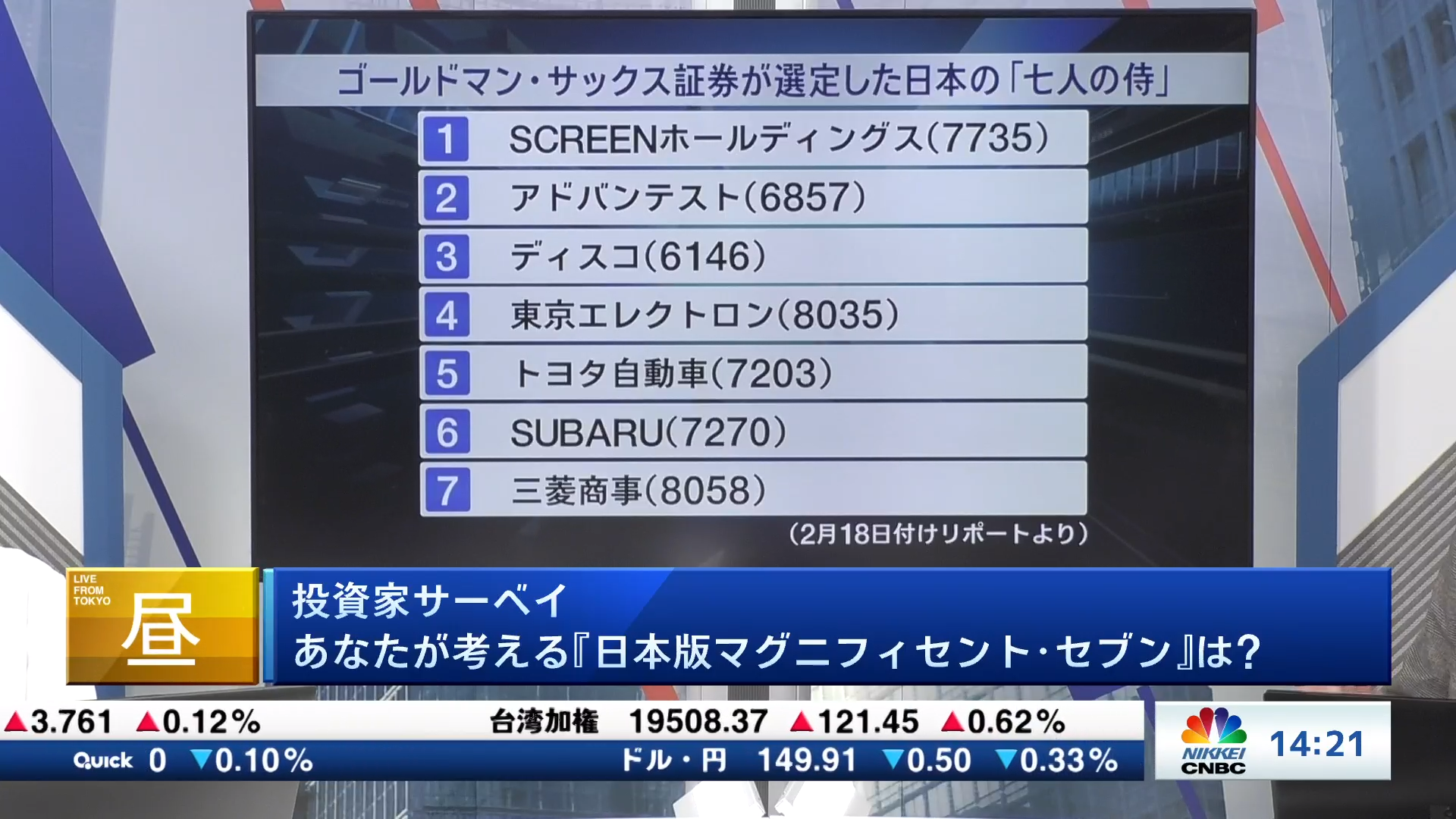 あなたが考える日本版マグニフィセント・セブン(壮大な7銘柄)を教えてください。