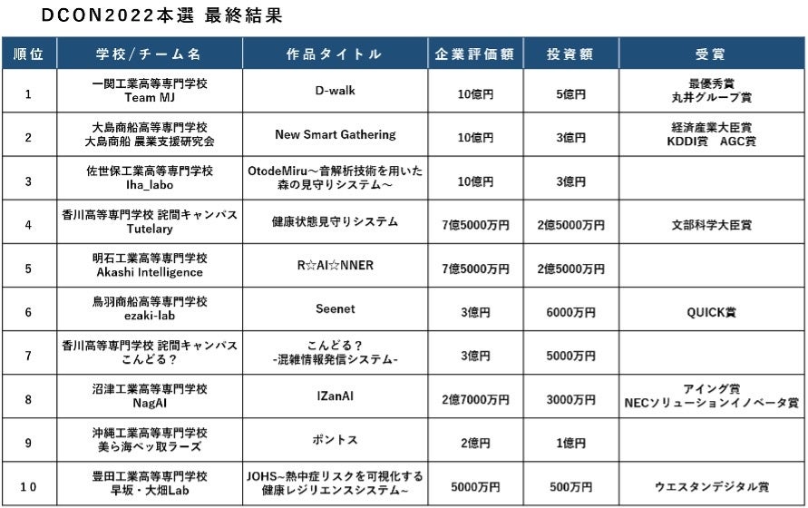 【DCON2022 本選結果発表】過去最高10億円の企業評価額が3チームに。激戦を制し「D-walk」が最優秀賞を受賞