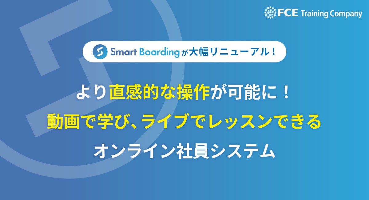 株式会社FCEトレーニング・カンパニー(本社:東京都新宿区 代表取締役:荻野純子)は、「動画で学んで、ライブでレッスン」のオンライン社員教育システム『Smart Boarding』のUIを大幅リニューアルいたしました。