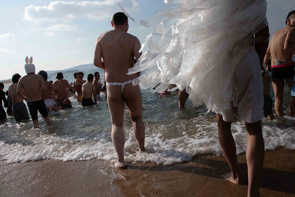 本展では、村の祭りで流鏑馬に使われる馬の口元、お盆飾りを燃やす人、初泳ぎに人々が集まる様子、朝焼けを背に蟹を抱え上げる漁師、廻しを締め祭りに向かう子供など、自身が生まれ育った村や、その周辺の村で暮らす人々の日常を撮影した写真を展示します。