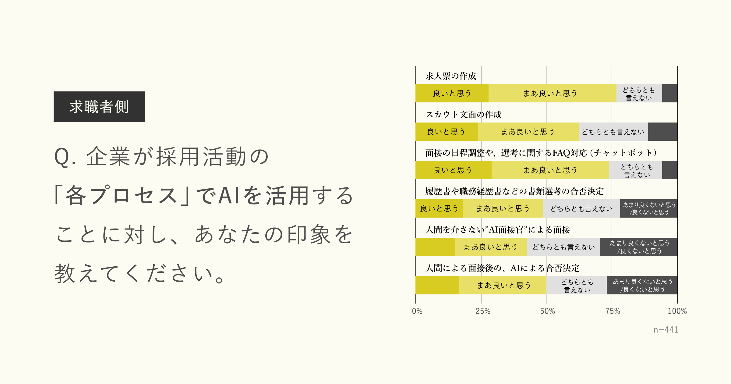 ・企業の半数以上が、求職者のAI活用に肯定的