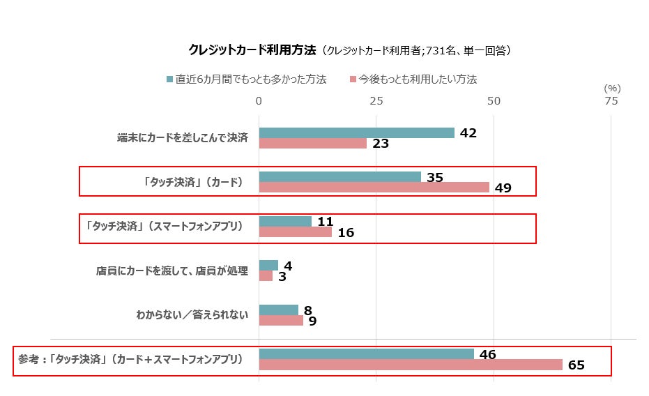■クレジットカードの利用ではタッチ決済が主流となり、今後の利用意向でも顕著な伸び