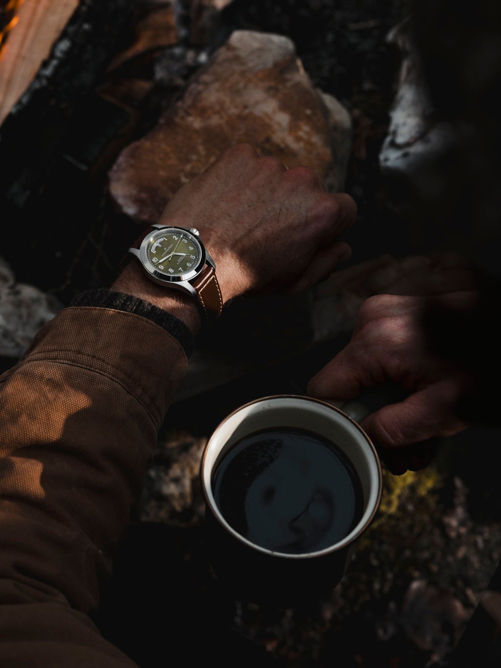 フィールドの枠を超えて着用できるよう設計された「カーキ フィールド キング」は、堅苦しさのない信頼性を求める人々のために作られ、ウィークデーのルーティンから週末のアウトドア、旅先から日常の喧噪を離れた時間へと、シームレスに移行できます。レザーストラップでもスチールブレスレットでも、根底には準備に対するしっかりとした心構えを持ちながら、そのデザインは自由と未知への探求心によって形作られた時計です。
