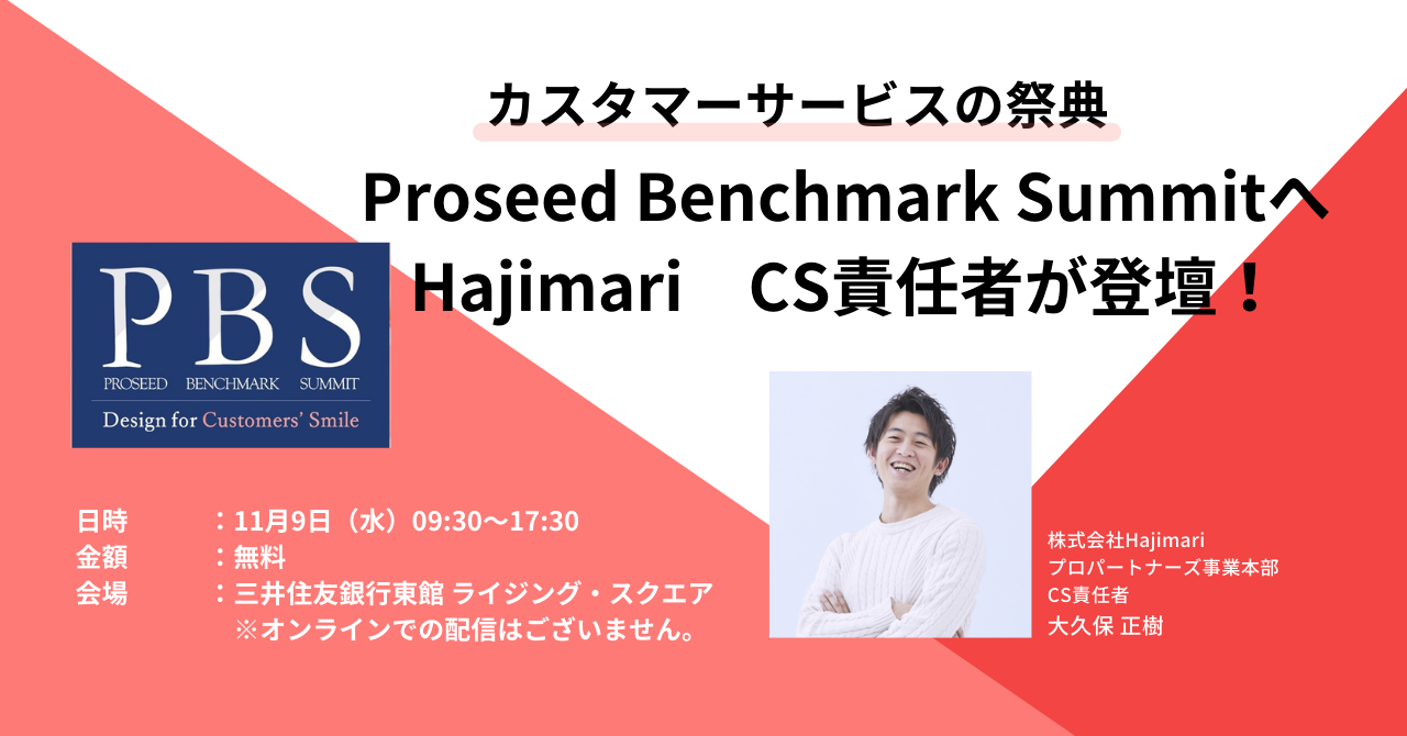 Hajimariのプロパートナーズ事業本部CS責任者が、11/9(水)カスタマーサービスの祭典『Proseed Benchmark Summit2022』へ登壇!
