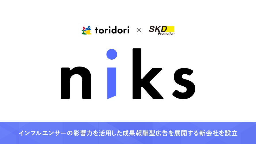 toridoriとSKD Promotionが共同で新会社『株式会社niks』を設立!インフルエンサーの影響力を活用した成果報酬型広告サービスを多角的に展開