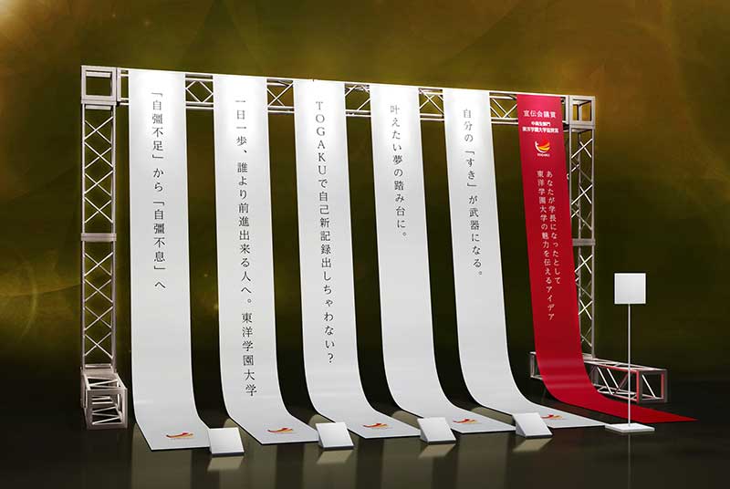 「TOGAKUコピージアム」(コピーとミュージアムを合わせた造語)は、中高生が書いた“東洋学園大学のキャッチコピー展”です。