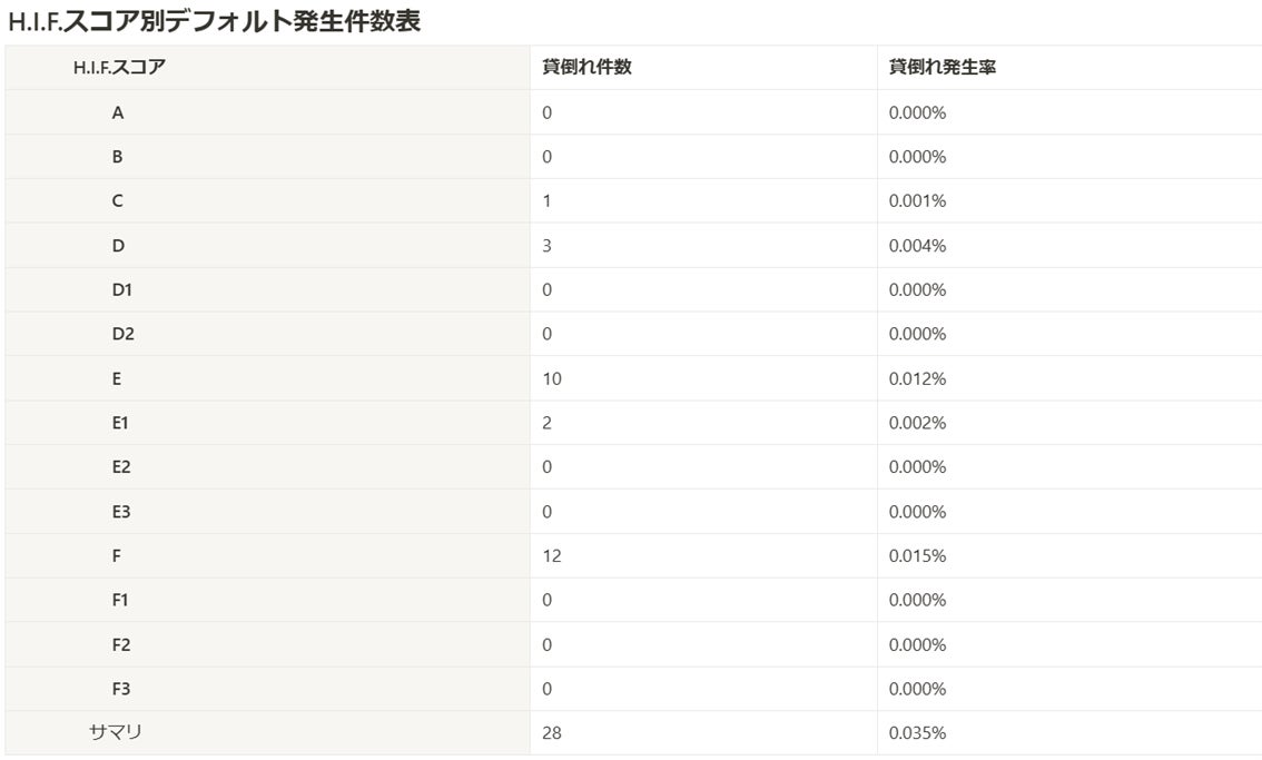 本技術の活用により、業界平均デフォルト率1.08%に対し、H.I.F.は1/27の0.04%と、圧倒的に低い水準を誇ります。