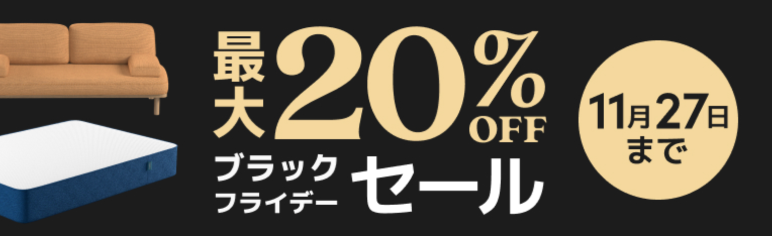 「コアラブラックフライデーセール」では、マットレスの他、ピローやソファーなど、コアラブランドの全商品を最大20%OFFでお買い求めいただけます。