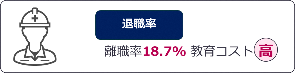 作業員の離職率は18.7%あることから、人手不足に関する課題は採用の難しさだけにとどまらず、人材が十分に定着しないことも課題として残っています。5人に1人が離職することからも、感覚的な知識や経験が重要視される業務であるにもかかわらず、教育に関するコストで大きなロスが生じていることがうかがえます。(※2)
