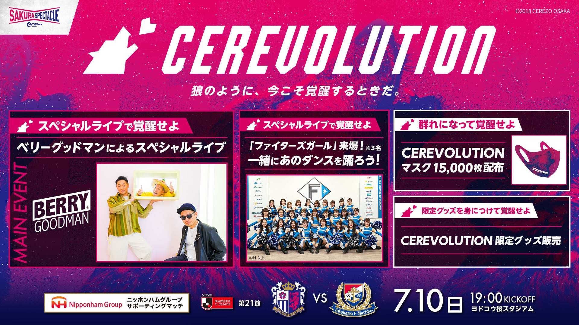 2021年に掲げたセレッソ大阪のサマーコンセプト。CEREVOLUTIONには「REVOLUTION=変革」「EVOLUTION=進化」という言葉が入っておりセレッソ大阪の象徴でもある狼のように、「覚醒し強く進化していく」という思いが込められております。夏の一大イベントとして今後も実施していきます。