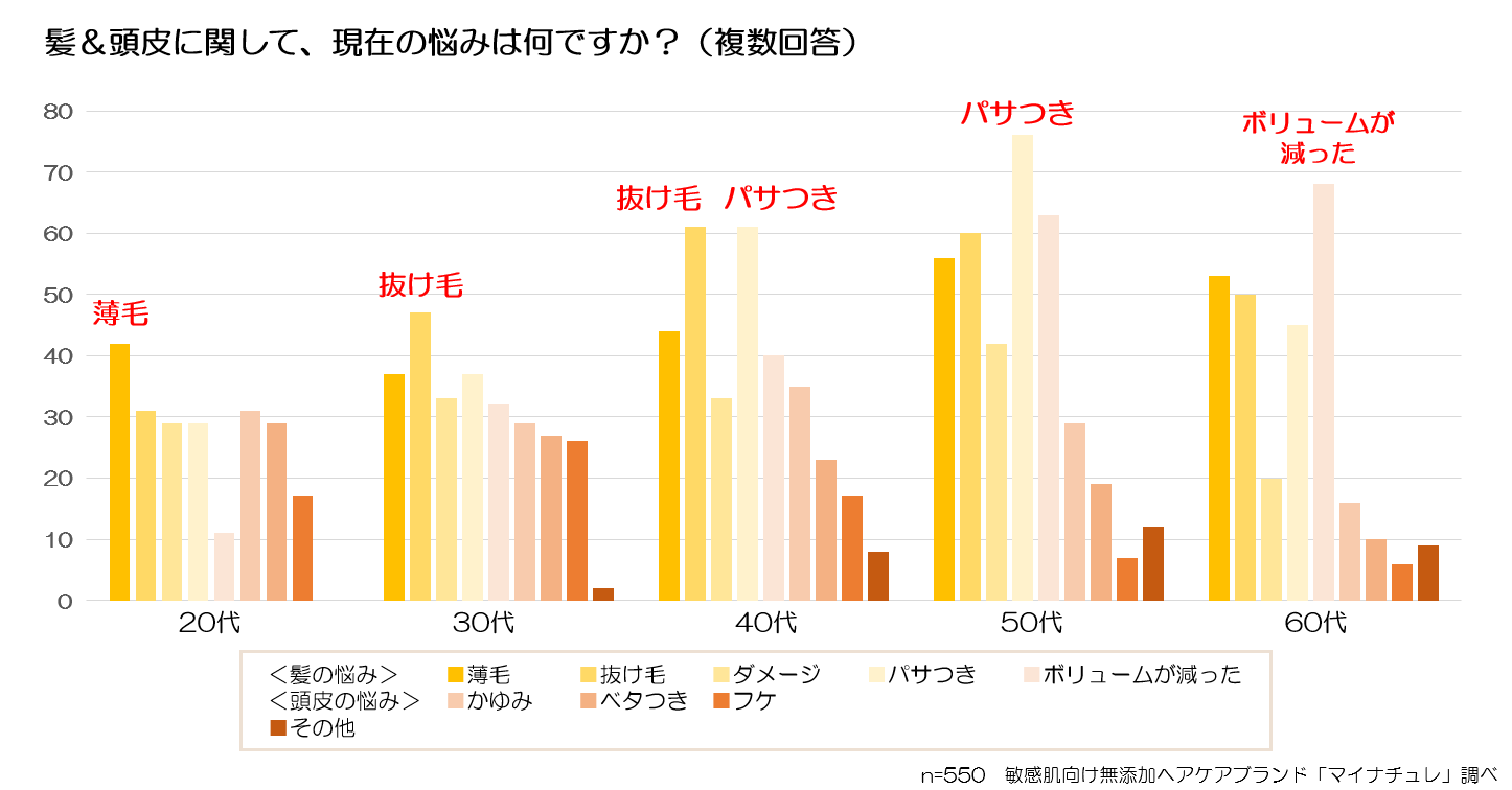株式会社レッドビジョン(本社:東京都新宿区、代表取締役:河 東龍、https://redvision.jp/ )が運営する、ブランド設立から11年間髪と頭皮への“やさしさ”にこだわった敏感肌向け無添加ヘアケアブランド『マイナチュレ』( https://www.my-nature.jp/ )は、日本全国の女性550人を対象に、「髪と頭皮の悩みと育毛剤」に関する調査を実施しました。