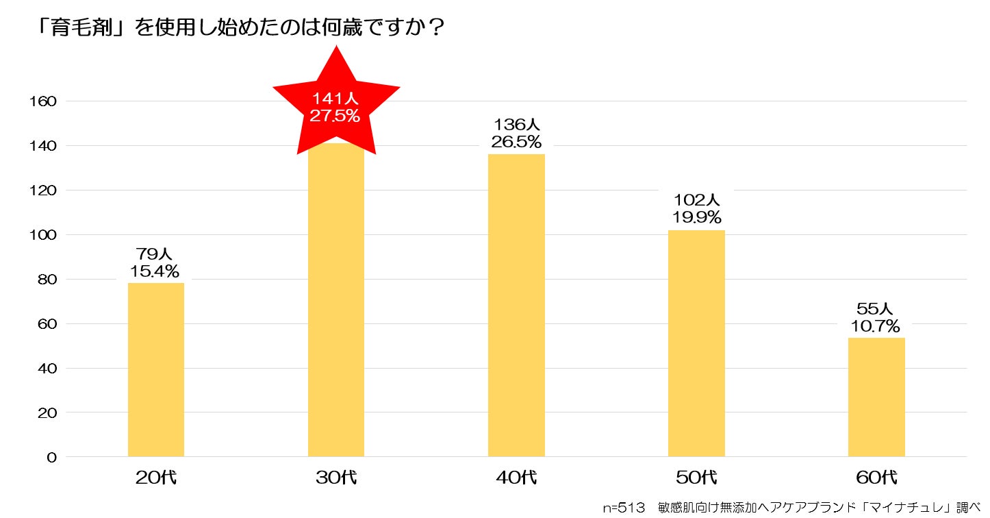 4割超が30代までに「育毛剤」使用をスタート!年齢別・女性の髪&頭皮悩みと育毛剤に関する調査