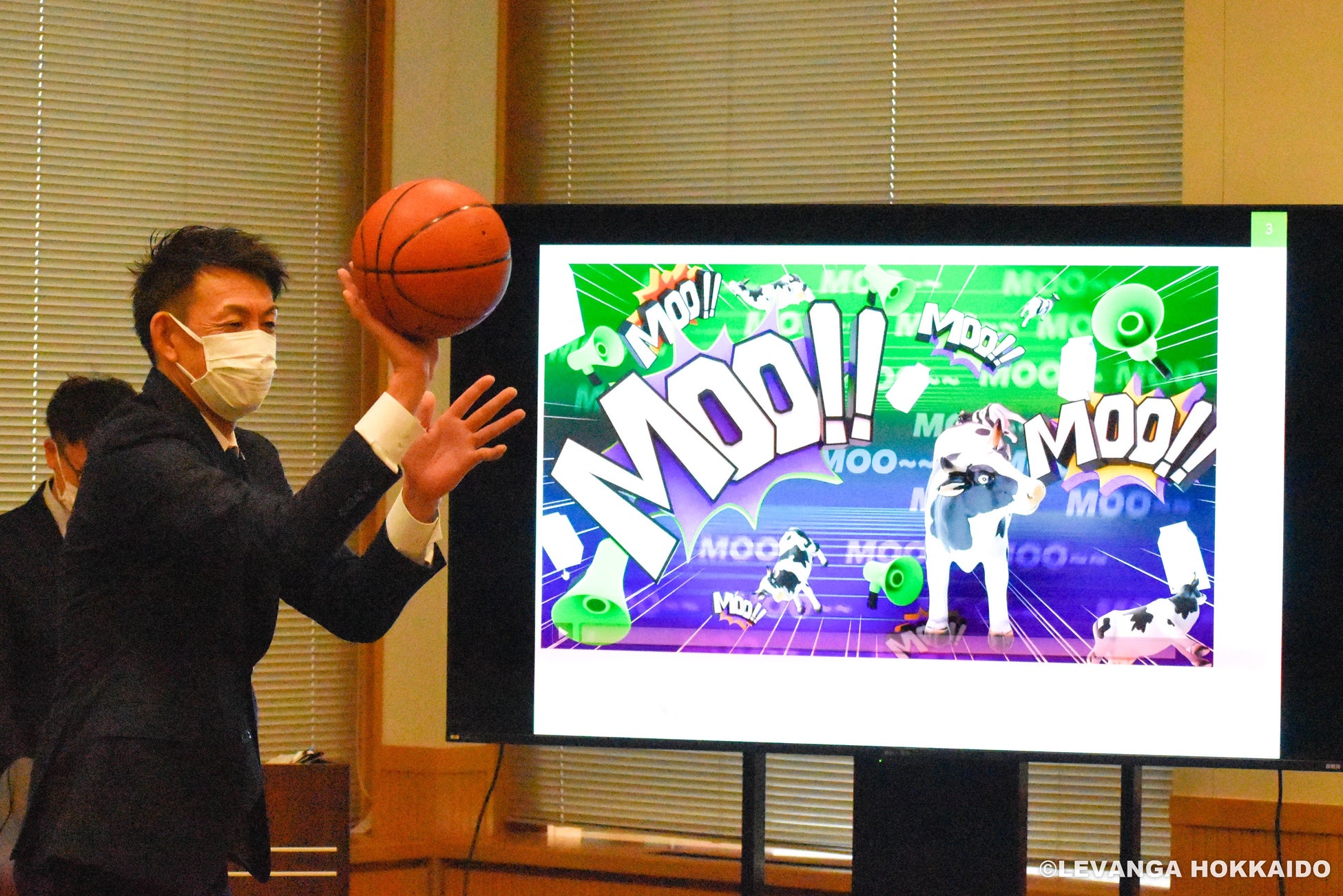 通常、観客によるboo!といった声による妨害を狙いとして行われますが、実際の牛の鳴き声を会場スピーカーで流すことにより、非難を表すbooingではなく、「モーイング(mooing)」とすることで、北海道のホームゲームならではのユニークな演出を楽しんでいただくこと、そして、印象的な演出による牛乳・乳製品の認知向上と消費拡大への寄与を狙いとして実施いたします。