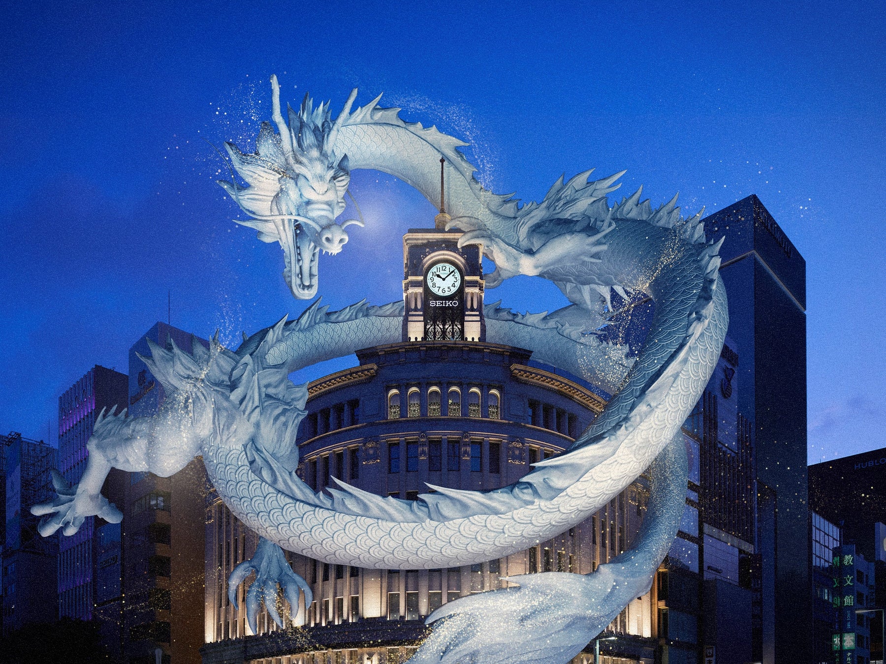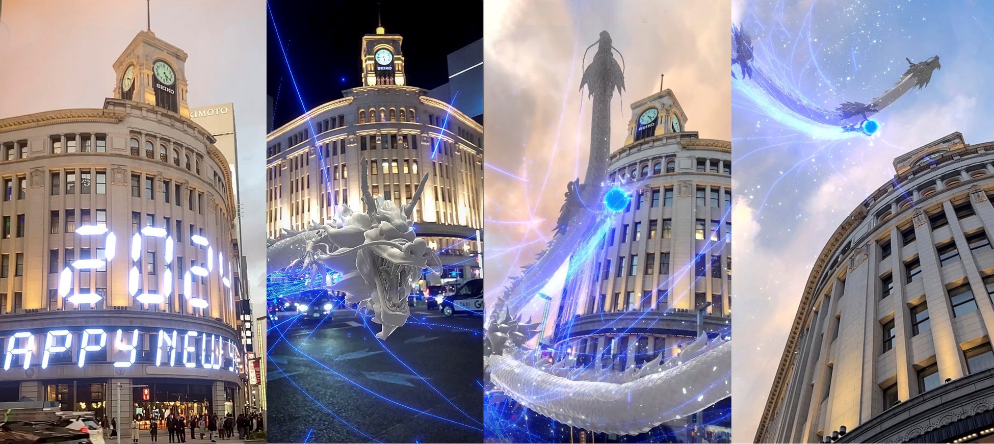 銀座のランドマーク SEIKO HOUSE GINZAで新年を祝う「時の龍」が銀座の空に舞い上がるセイコーが「時の龍 2024」ARショーを実施