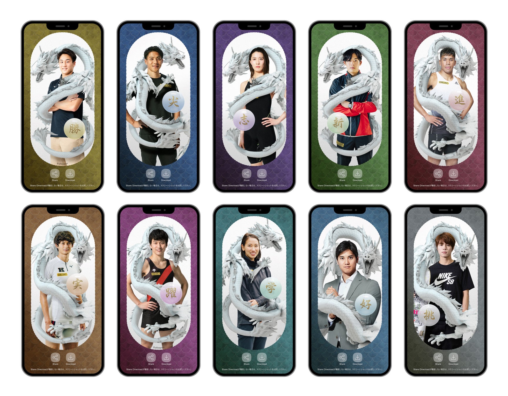 スマートフォンにインストールしたARアプリもしくはショーウインドウのガラス面に掲出されている2次元コードを読み込むことで、龍が運ぶ「時の辰みくじ」を受け取ることができます。2024年は、セイコーがスポーツの公式計時を開始して60周年の年であることから、新年を祝う「時の辰みくじ」では、スポーツの舞台で挑戦し続けるTeam Seiko(※1)をはじめセイコーに所縁のあるアスリート(※2)の言葉をお届けします。