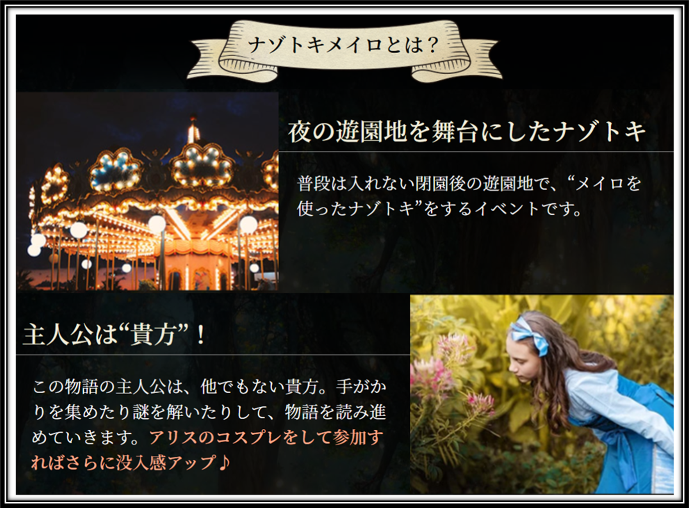 「夕方から楽しむ特別な時間!」閉園後の遊園地を貸し切り気分で謎解き体験‼「ナゾトキメイロ!アリスと不思議なメイロの森」絶賛開催中‼