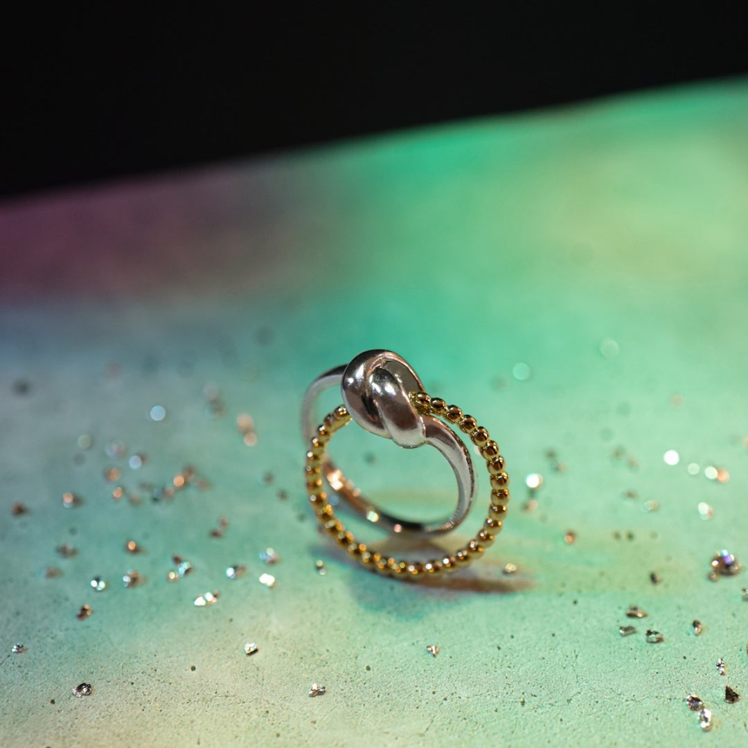 星々が瞬く宇宙の片隅で、惑星の環が優雅に重なり合う光景を指先に映し出すリング「ダブルムーンリング」。