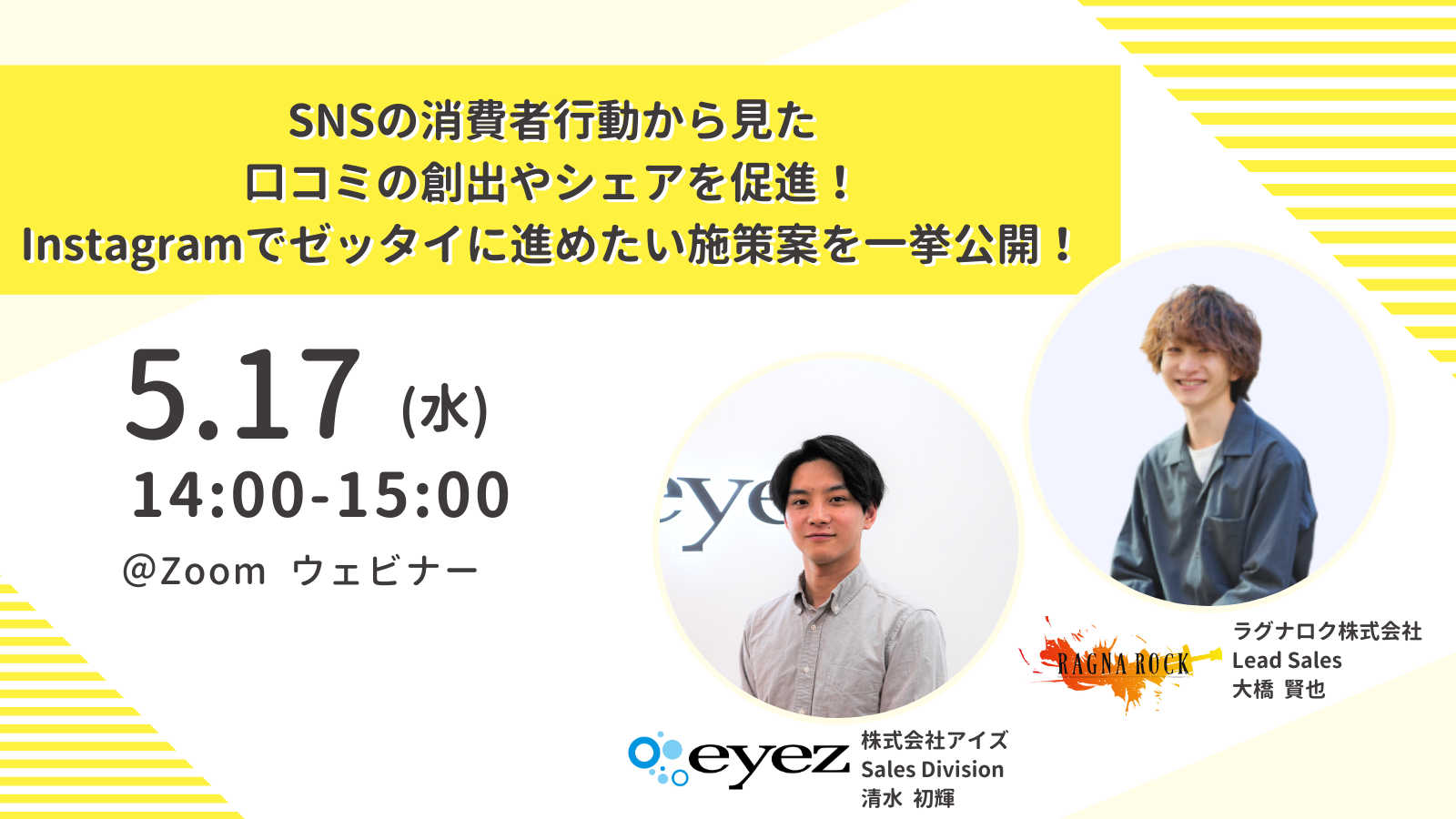 【無料オンラインセミナー】5月17日(水)14時〜 『SNSの消費者行動から見た口コミの創出やシェアを促進!Instagramでゼッタイに進めたい施策案を一挙公開!』