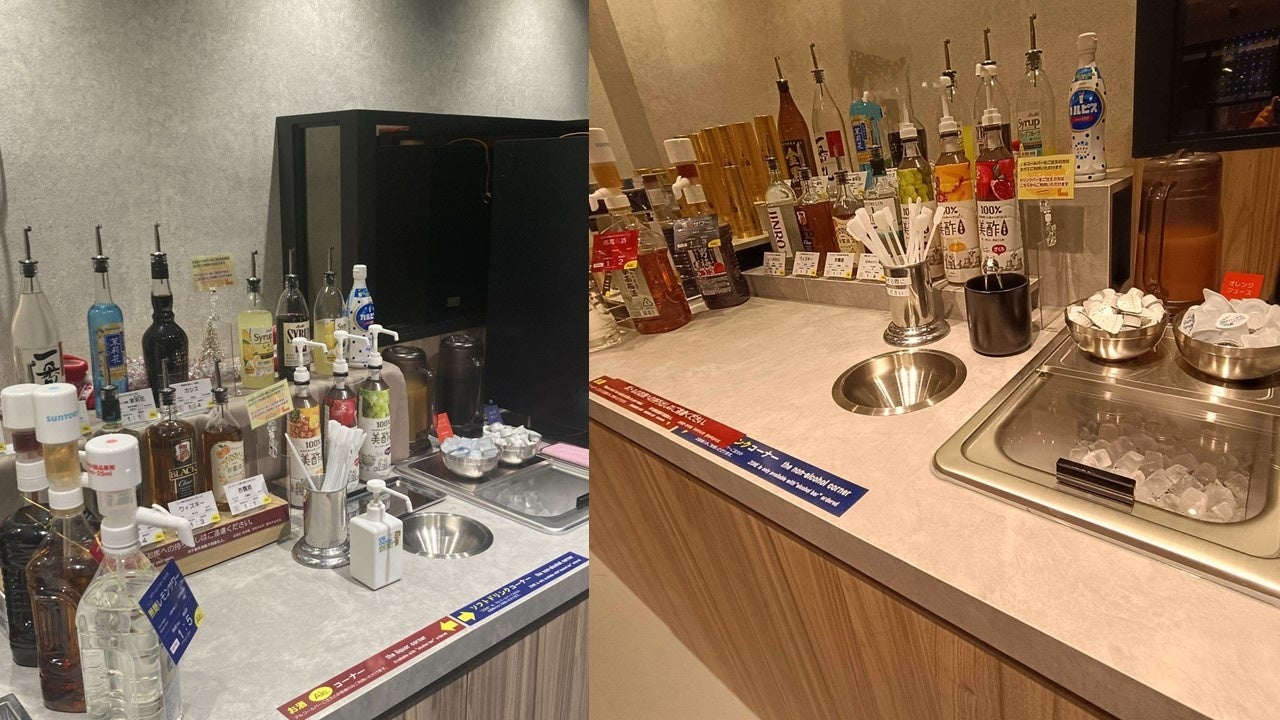 アルコールバーにあるお酒、割り材とドリンクバーを自由にお使いいただけます。