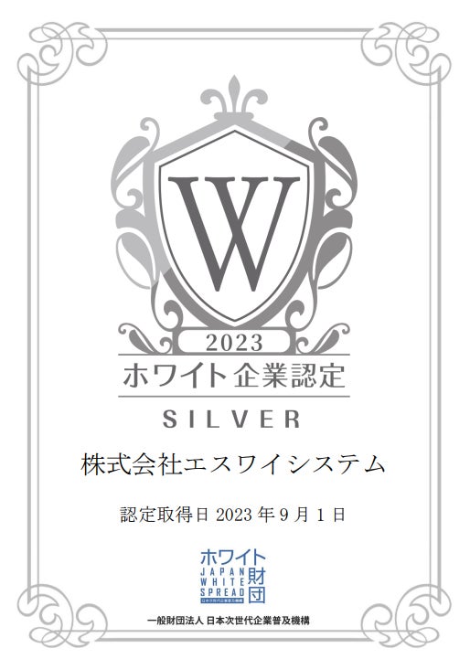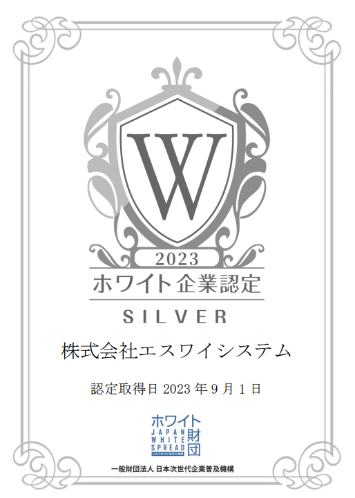 株式会社エスワイシステムは2023年9月1日に「ホワイト企業認定 シルバーランク」を取得されました!