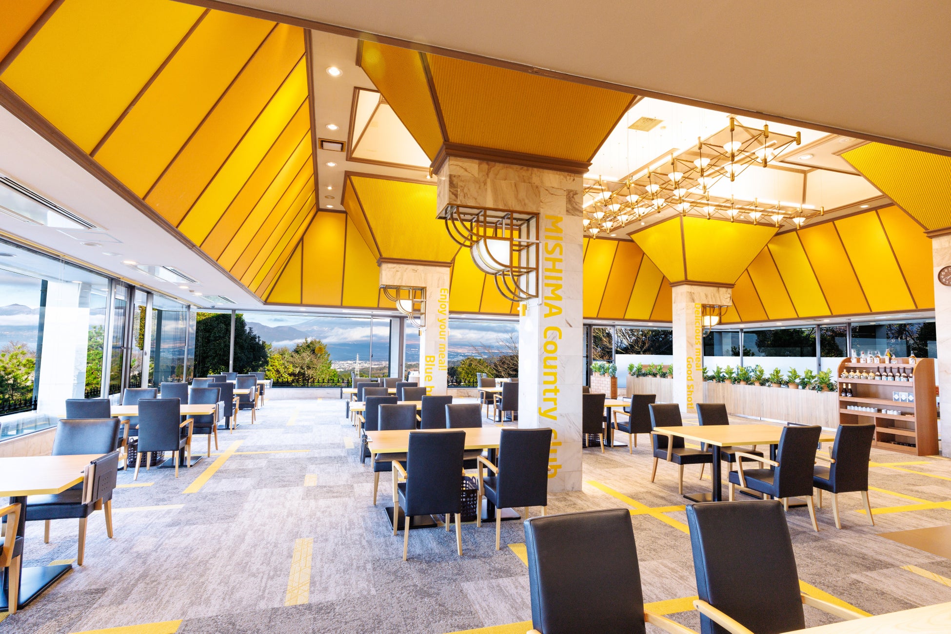 三島CCは、富士山と駿河湾が一望できる美しい丘陵地に位置する18ホールのゴルフ場で、豊かな景観に囲まれたコースは比較的フラットながらもバラエティに富み、OUT・INそれぞれ異なる趣を楽むことができます。本年2月にはクラブハウスをリニューアル。三島市の木である「イチョウ」や市の鳥に制定されている「カワセミ」など、ゆかりのある要素を随所に取り入れ、カジュアルな中にも清潔感のある空間を演出しています。また、富士山のパノラマが望める天然温泉の露天風呂も醍醐味の一つ。プレー後の疲れを癒すリフレッシュ時間も存分にお楽しみいただけます。
