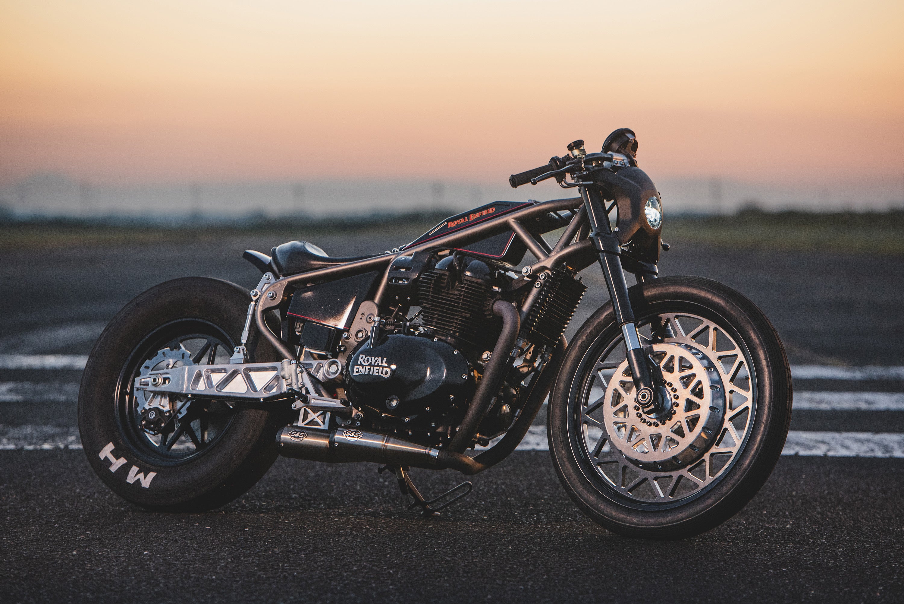 ラフクラフツは、高品質のアルミ削り出しパーツやカーボン製パーツを世界中で展開するパーツブランドであると同時に、それらのパーツをふんだんに使いながら、ミニマムなデザインにスピード感をミックスした、個性的なカスタムバイクを製作するカスタムファクトリーとして知られています。ヨコハマホットロッドカスタムショーに展示する車両は、SHOTGUN 650をベースにした最新作。EICMA2025のロイヤルエンフィールド・ブースで発表した「Caliber Royale(キャリバー・ロイヤル)」です。