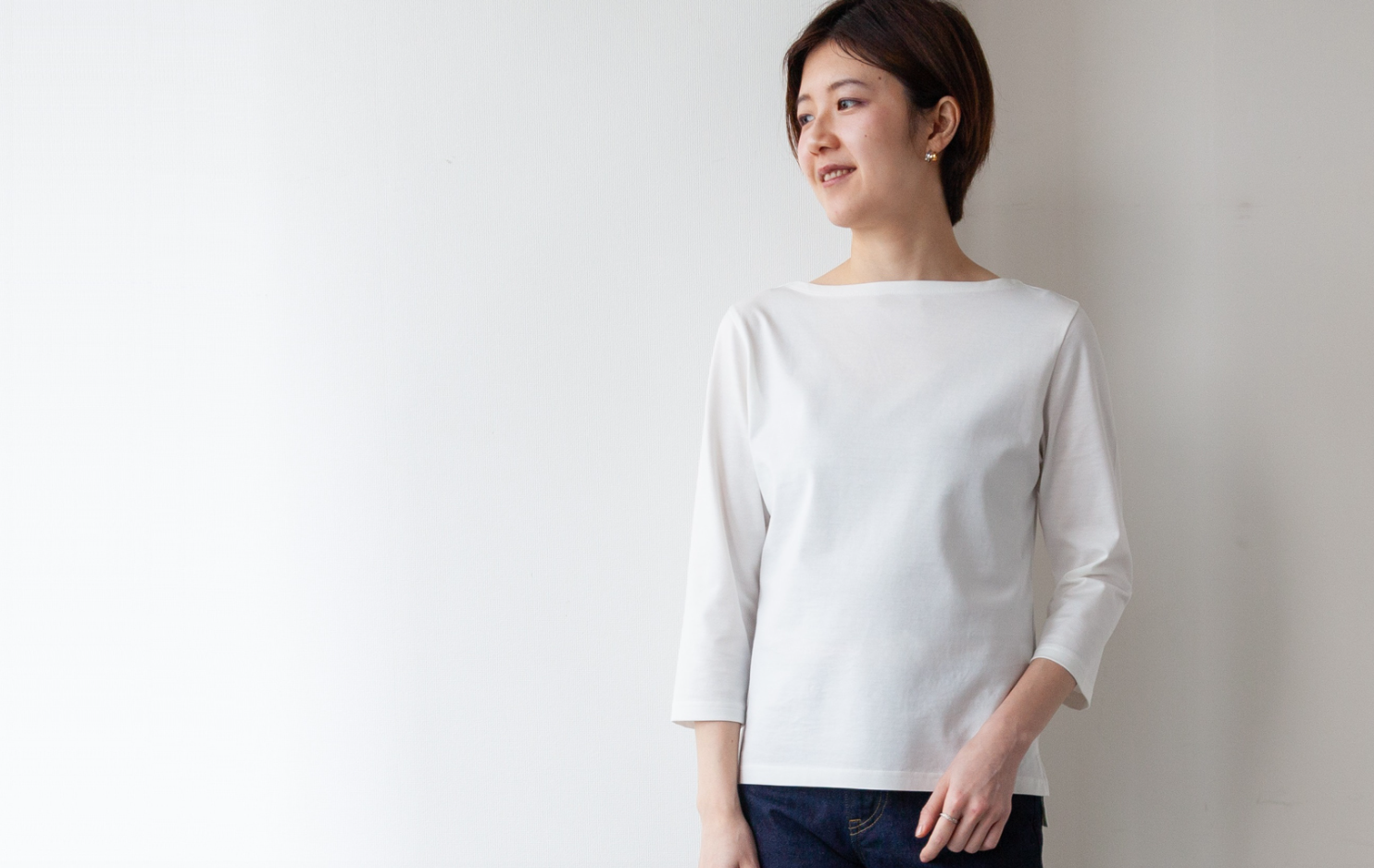 ■上質コットン100%のドレスTシャツボートネック七分袖
