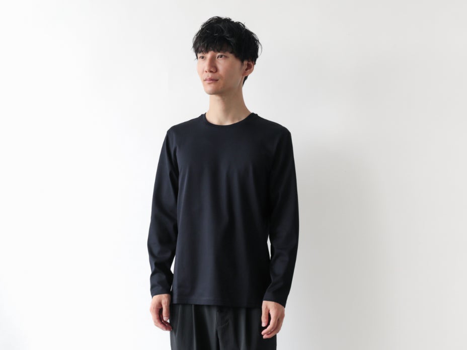 ■上質コットン100%のドレスTシャツクルーネック長袖細衿