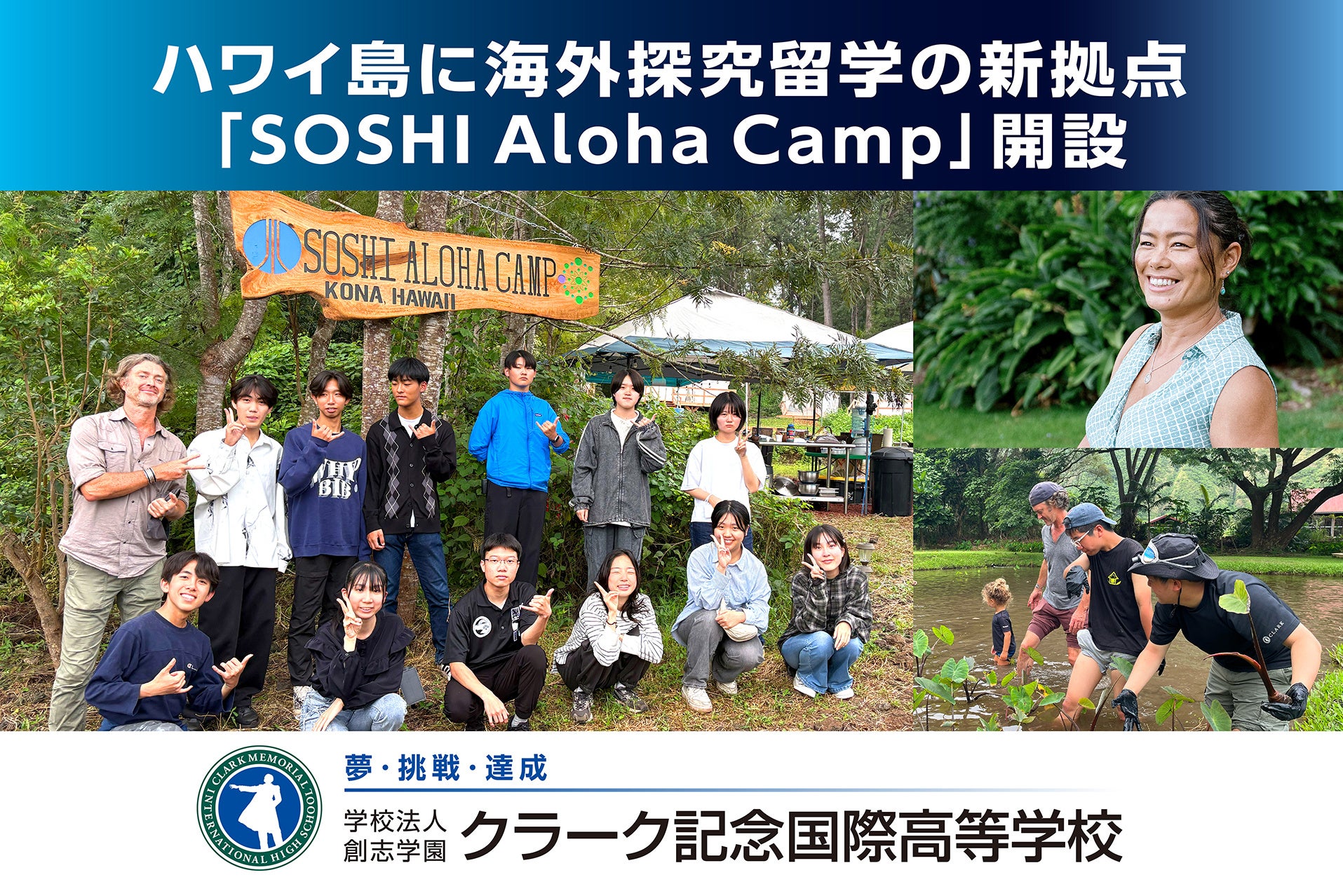 クラーク記念国際高等学校が、ハワイ島に海外探究留学の新拠点「SOSHI Aloha Camp Kona, Hawaiʻi」を開設