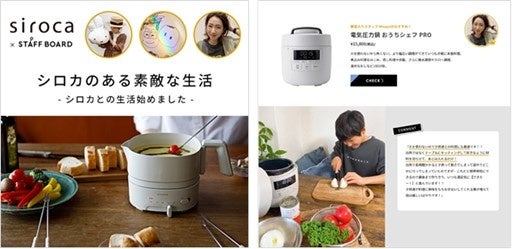 製品の販売に加え、ドットエスティ内特設ページでは実際にシロカ製品を使った「STAFF BOARD」スタッフによるレポートも公開します。「STAFF BOARD」とは、アダストリアが展開するブランドのショップスタッフが、個人のスタイリングやライフスタイルを発信する人気コンテンツ。その中から、売り上げやフォロワー数上位の人気スタッフがシロカの調理家電を体験し、レポートを発信することで、実際の使用感など、製品を生活の中に取り入れてみてのリアルな声とともに製品をお届けします。