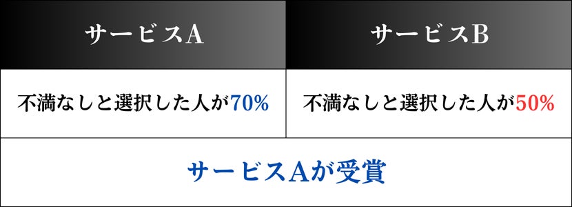 「使い続けたいサービス」の項目は、下記の質問に対して、①不満なしと答えた割合が最も高いサービスを使い続けたいサービス(プロバイダ)No.1として受賞します。
