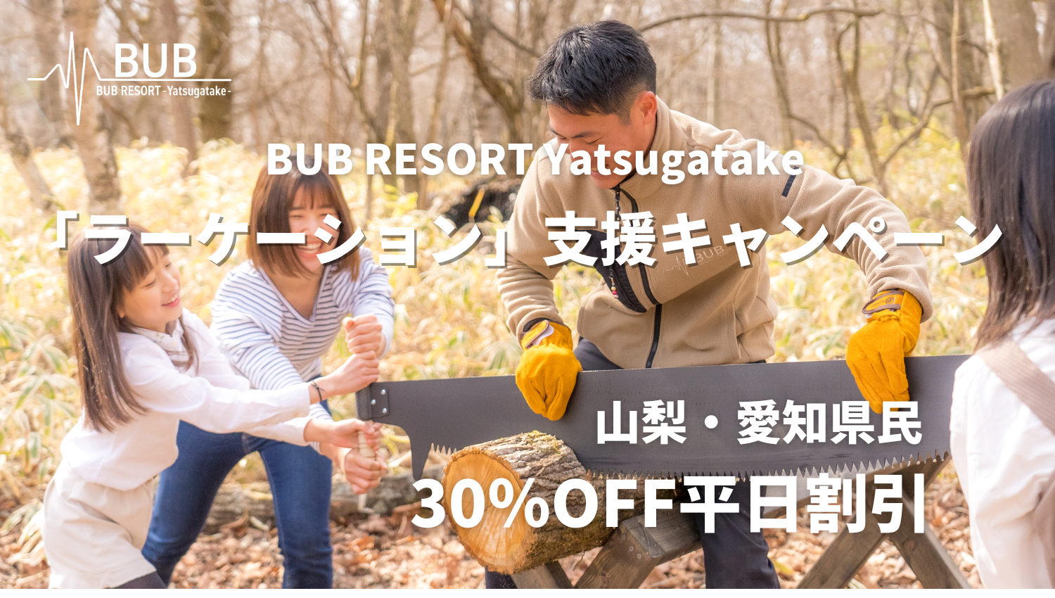 【BUB RESORT Yatsugatake】山梨県・愛知県民限定で、宿泊料金30%オフのキャンペーンを開催!