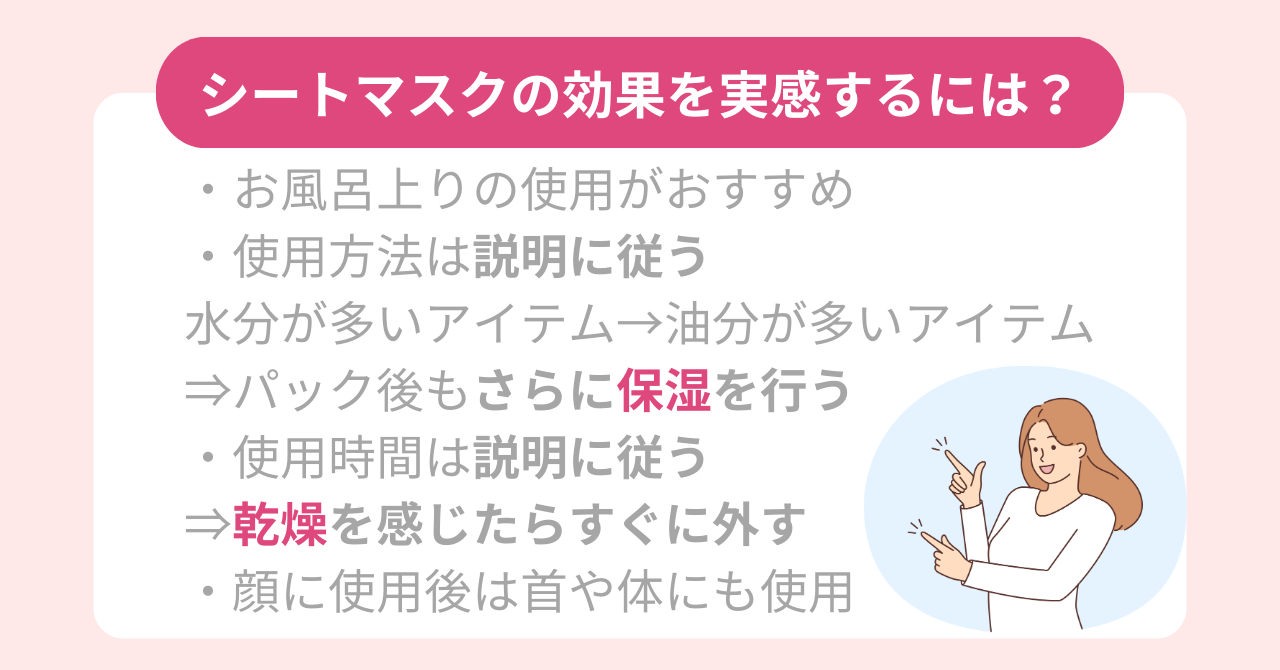フェイスパック(シートマスク)を使用して、さらに肌が乾燥してしまっては意味がないですよね。