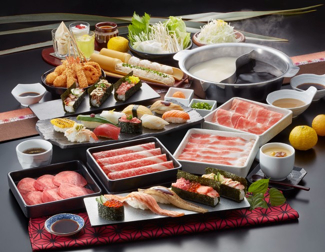 老舗和食店のノウハウを踏襲した本格しゃぶしゃぶに加え、素材にこだわったバラエティ豊かな寿司が食べ放題でお楽しみいただけます。和食の職人がこだわり抜いた茶碗蒸しや串揚げなどの逸品に加え、旬の素材を使用した季節限定の商品も充実しております。タッチパネル注文でお席を離れることなく、ごゆっくりお過ごしいただけます。ランチタイムには平日限定の数種類のお膳や、お手頃なランチ食べ放題コースもご用意しております。