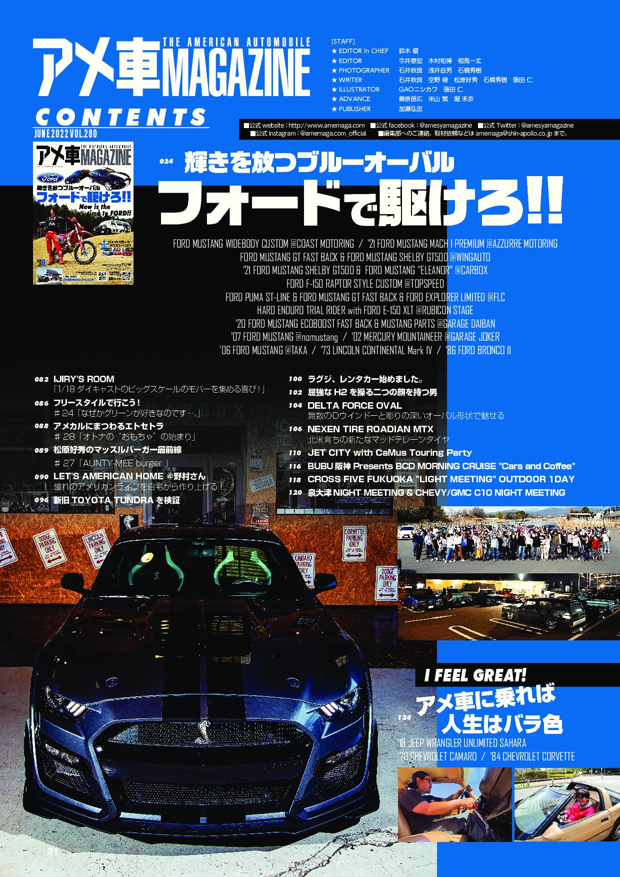 ※2022年4月15日(金)発売『アメ車MAGAZINE6月号』目次。