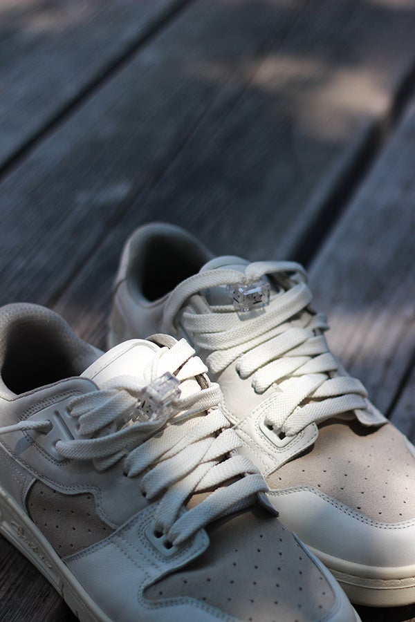 ホワイト/オフホワイトのカーフレザーとヌバック、スエードを使用した異素材コンビが特徴。