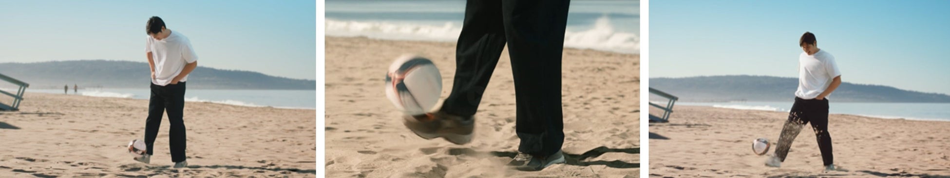 今回、新作TV-CMやメインビジュアルの撮影では、大谷選手が砂浜でリフティングに挑戦。ときに笑顔を見せながら、少年のようなピュアな表情でボールを蹴り上げていました。短い撮影時間だったにも関わらず、見事にOKテイクを撮ることに成功。一流アスリートとしてのポテンシャルの高さを見せ、撮影スタッフを驚かせていました。