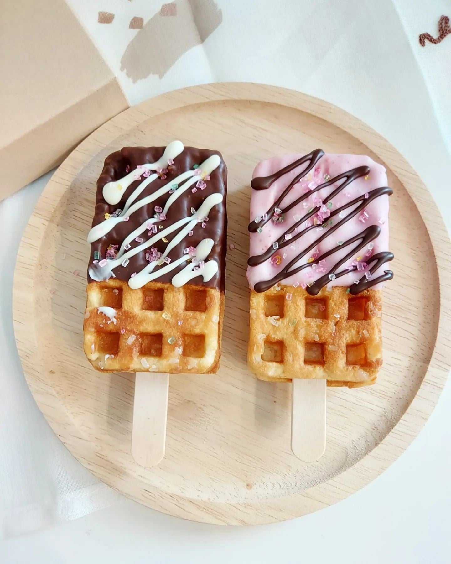 ・内容:いちごワッフル1本、ミルクチョコレートワッフル1本、デコレーションセット(チョコペン2本、ジュエリーシュガー1袋)